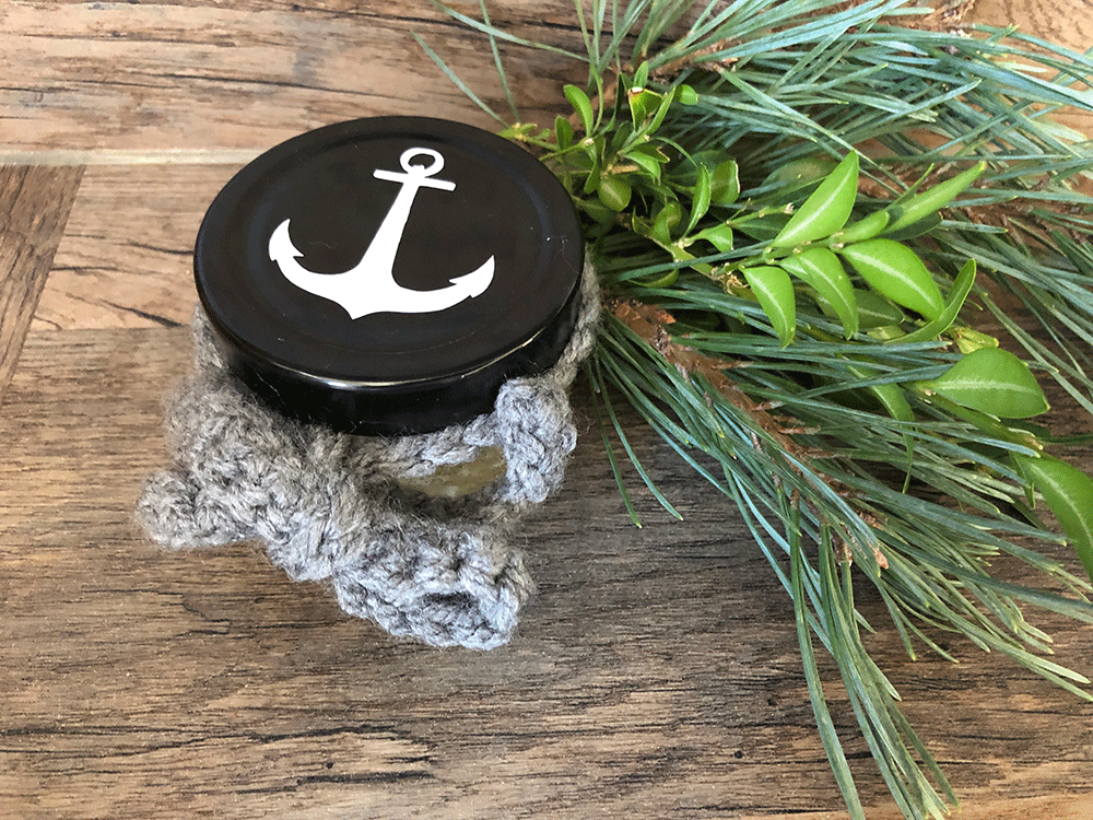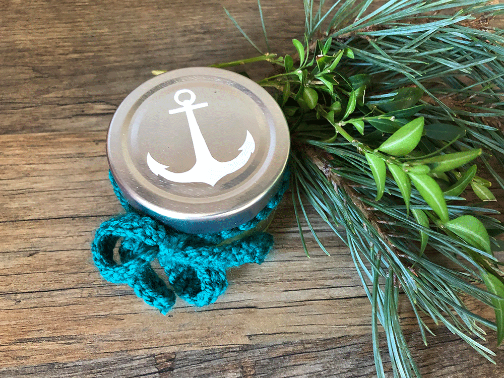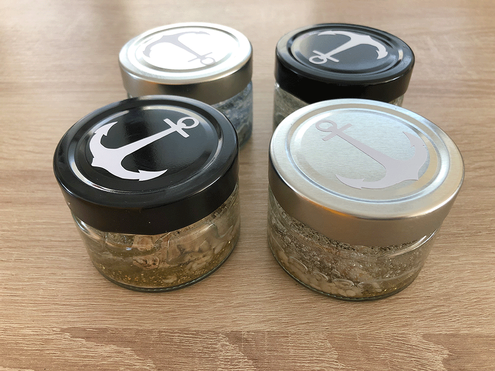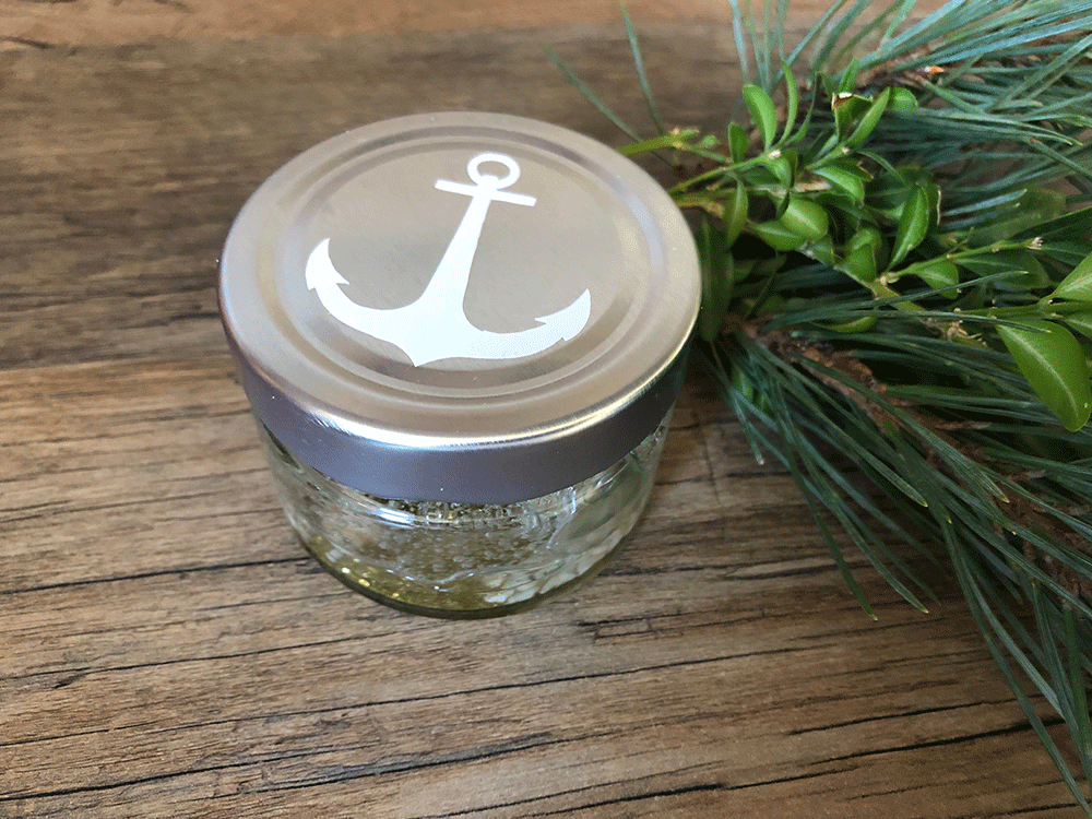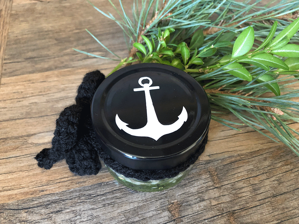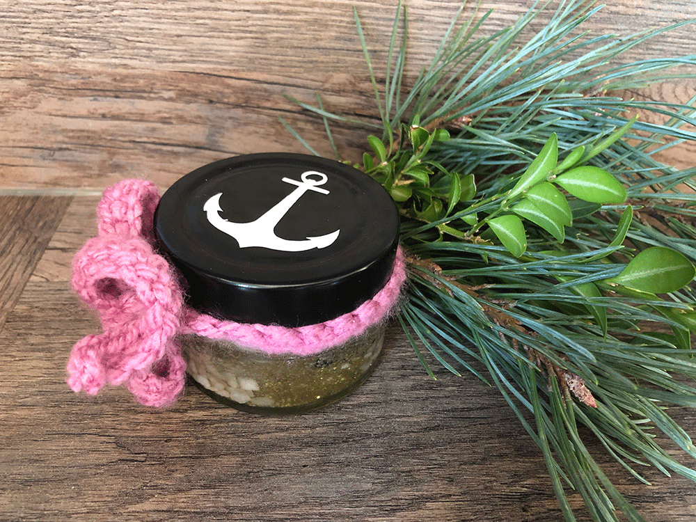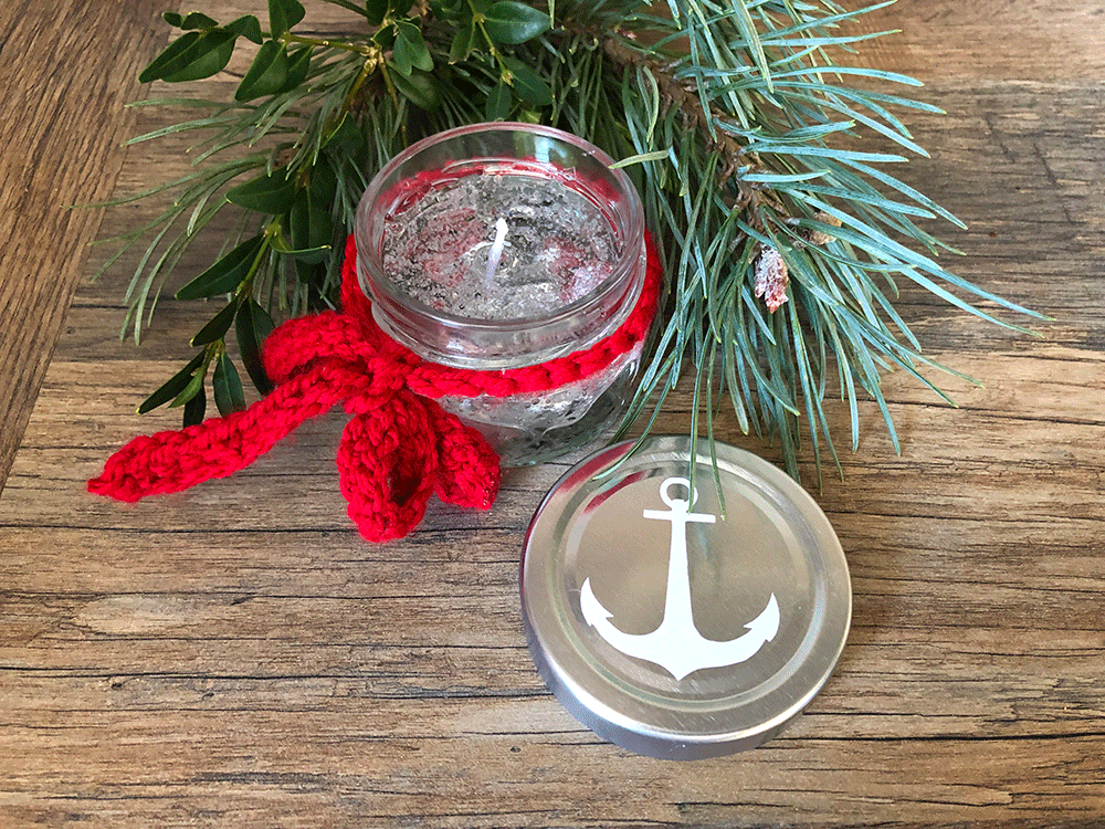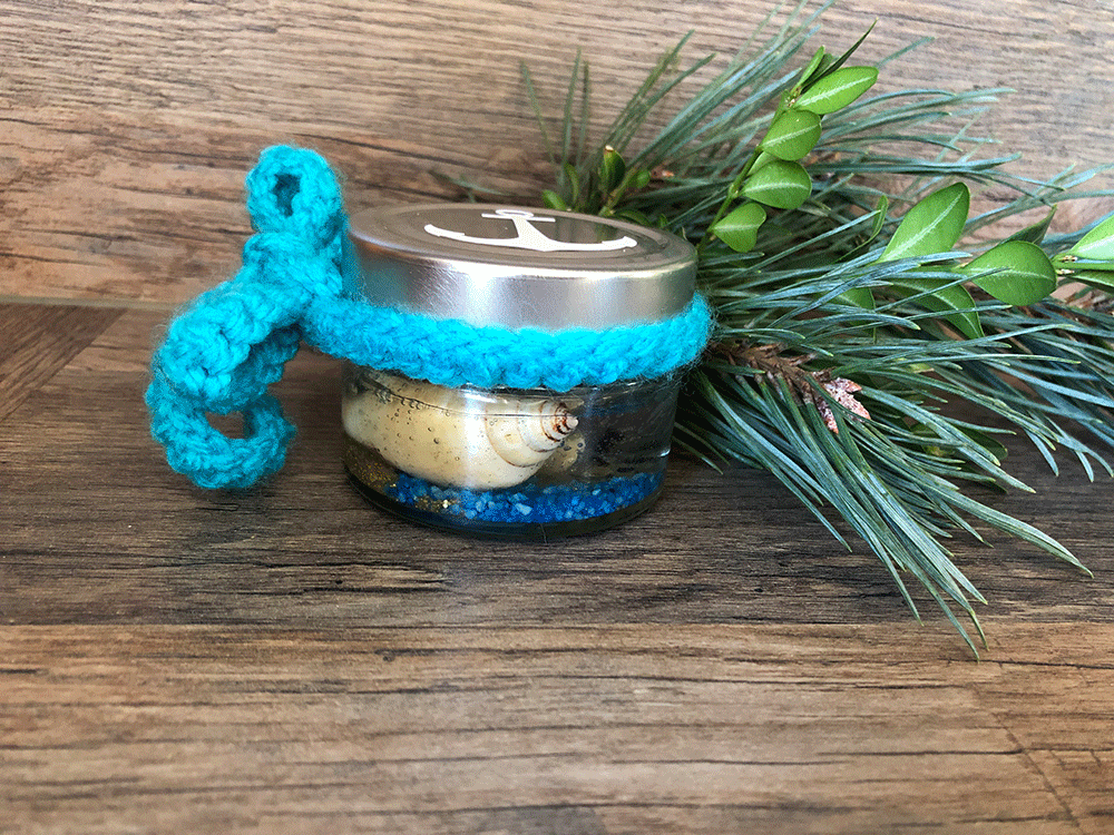 Klein aber fein! Die Gelkerzen in MARITIM Look. Diese süßen Glässchen sind zum Schutz mit einem verschraubbaren, tiefen Deckel in Silber oder Schwarz versehen. Jedes Glas beinhaltet ein Stück Meeressehensucht auf dem Boden. Es gibt Muscheln und Sand und Steinchen. Die Luftblässchen vermitteln den Eindruck als ob das Meersewasser gerade eben durch einen Meerbewohner aufgewühlt worden wäre. Ein kleiner, süßer Schal- zum Erwerben nach Wunsch und Bedarf (Farbe ist wählbar). Auf dem Deckel oben befindet sich noch zusätzlich ein kleiner Anker;) Jedes Glas ist handgefertigt und damit unikat.