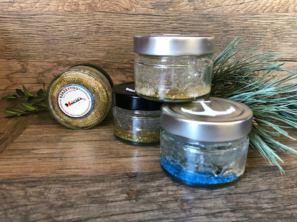 Es gibt nichts stimmungsvolleres als der Schein einer Kerze. Wenn sie noch dazu wunderbare Schattierungen auf dem Untergrund wirft, zaubert sie unvergessliche Momente. Diese Kerzen hier sind aus Glas in verschiedenen Farbierungen und einem Gelkern. Das tolle dabei ist, dass wenn Eure Kerze leer ausgerbrannt sein wird, Ihr einfach einen Teelicht hinein stellen könnt und schon geht der Zauber weiter. Lasst Euch auch von den Gelkerzen verzaubern oder verschenkt sie weiter. Die Freude wird garantiert sein!