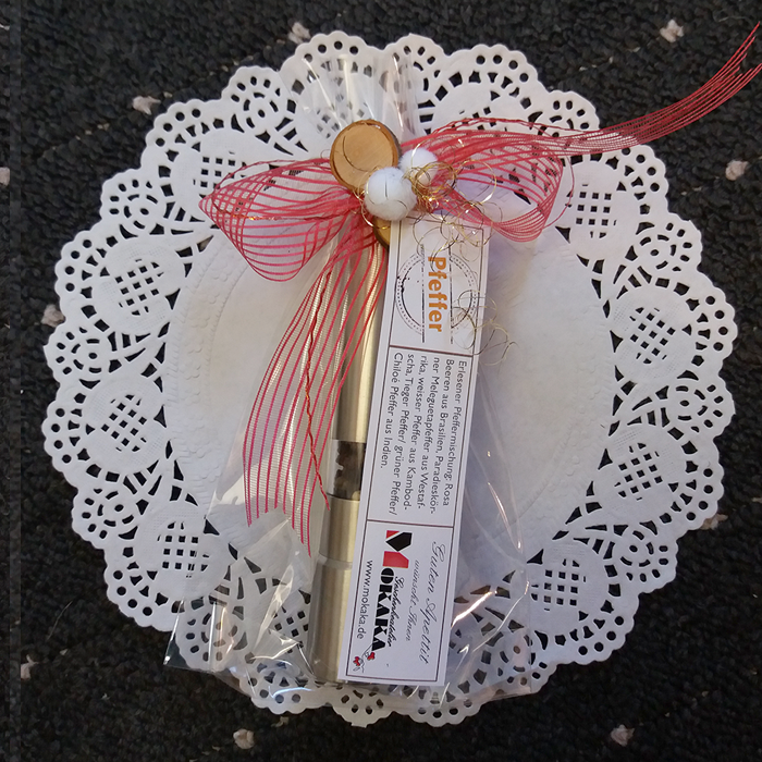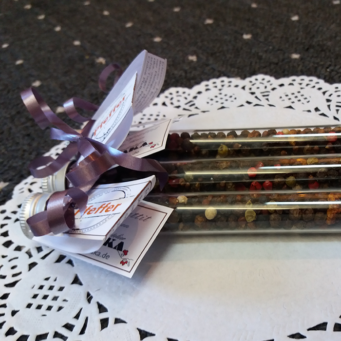 auch fürs Kochen findet Ihr bei mir die kleinen Phiolen mit verschiedenen Salzsorten: aus Pekistan, Österreich, Afrika…mit oder ohne Kräutermischung (Kräuter meistens aus dem eigenen Garten;). Es gibt auch Phiolen mit leckeren Pfeffersorten z.B.: Bio Tiger geräuchert, Urpfeffer Banasura aus Indien, Bio rosa Beeren aus Brasilien, roter Pfeffer aus Kambodscha, langer Pfeffer aus indien…o ja! richtig gut und richtig lecker! Und dabei sehen sie richtig schön aus, die Phiolen!