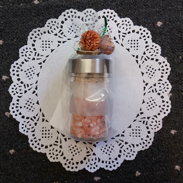 Ebenfalls gibt es das schöne Salz in kleinen Lebensmittelechten Fläschchen zu erwerben. Diese sind klein aber fein und reichen für 4 Vollbäder.